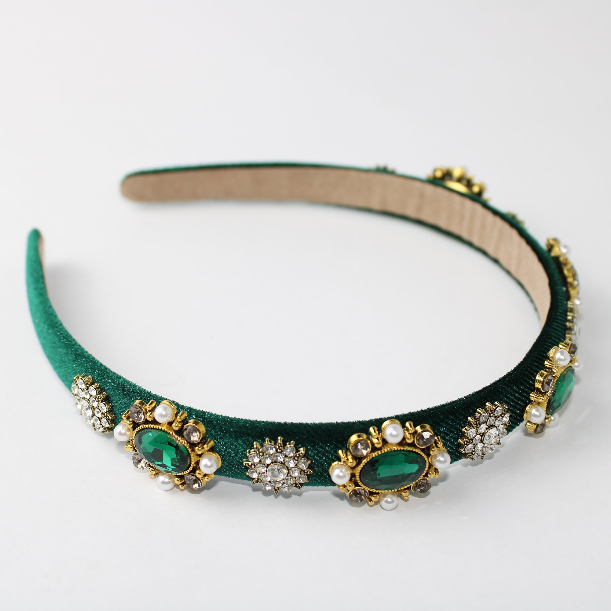O Arco Veludo Cristal é a escolha perfeita para quem busca elegância e estilo em um único acessório. Revestido em veludo na cor verde e adornado com cristais e pérolas, ele proporciona um visual sofisticado e impecável, ideal para festas, eventos especiais ou para elevar produções do dia a dia.