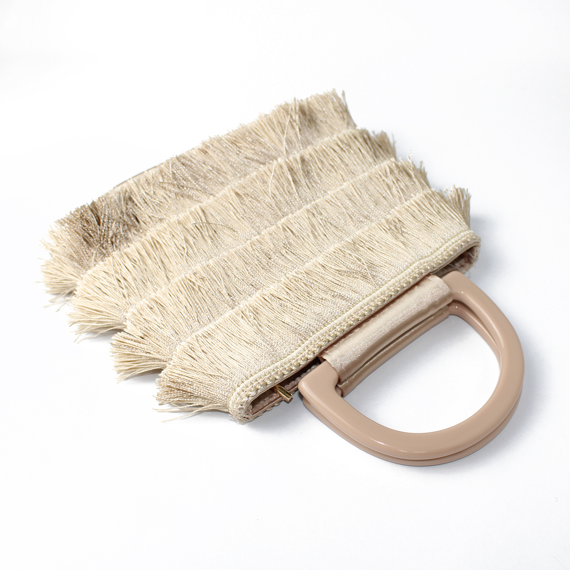 Dê um toque de movimento e glamour ao seu visual com a nossa Bolsa de Mão Nude com Franjas. Esta peça statement é revestida por camadas de franjas delicadas que proporcionam um efeito visual incrível e sofisticado.