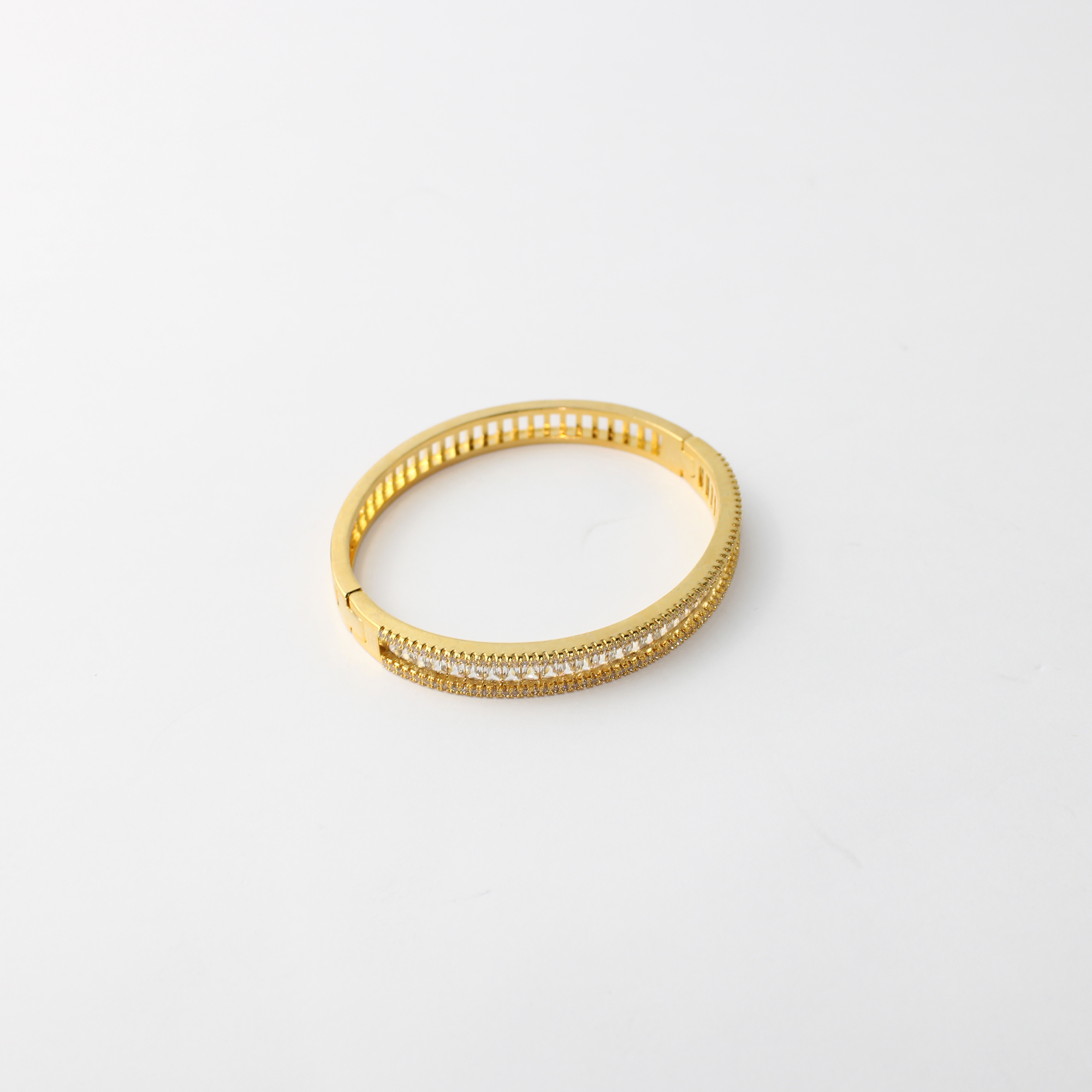 Fabricado com metal de alta resistência e acabamento impecável, o bracelete possui um sistema de fechamento lateral por dobradiça, proporcionando segurança e facilidade ao vestir. O design vazado na parte interna garante leveza e conforto durante o uso prolongado. É o acessório indispensável para compor looks de festa, eventos formais ou para elevar produções casuais com elegância instantânea.