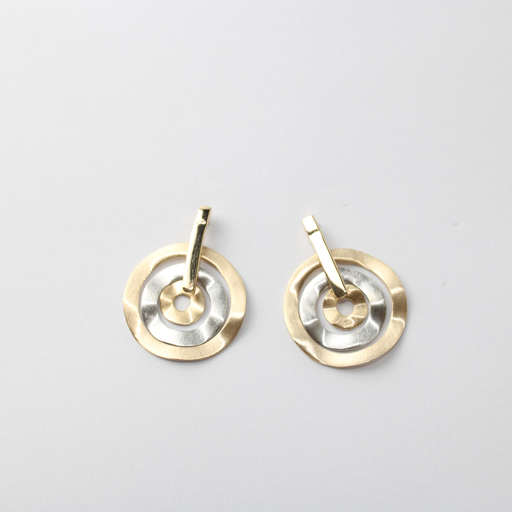 Este brinco é cuidadosamente folheado, exibindo um design vazado que adiciona leveza e um toque artístico ao seu visual. A combinação única de Ouro Fosco e Prata Fosco cria um contraste sublime e uma estética moderna, tornando-o incrivelmente versátil para complementar tanto looks diurnos quanto noturnos. Perfeito para a mulher Fiszpan que busca um acessório que alie modernidade e atemporalidade.