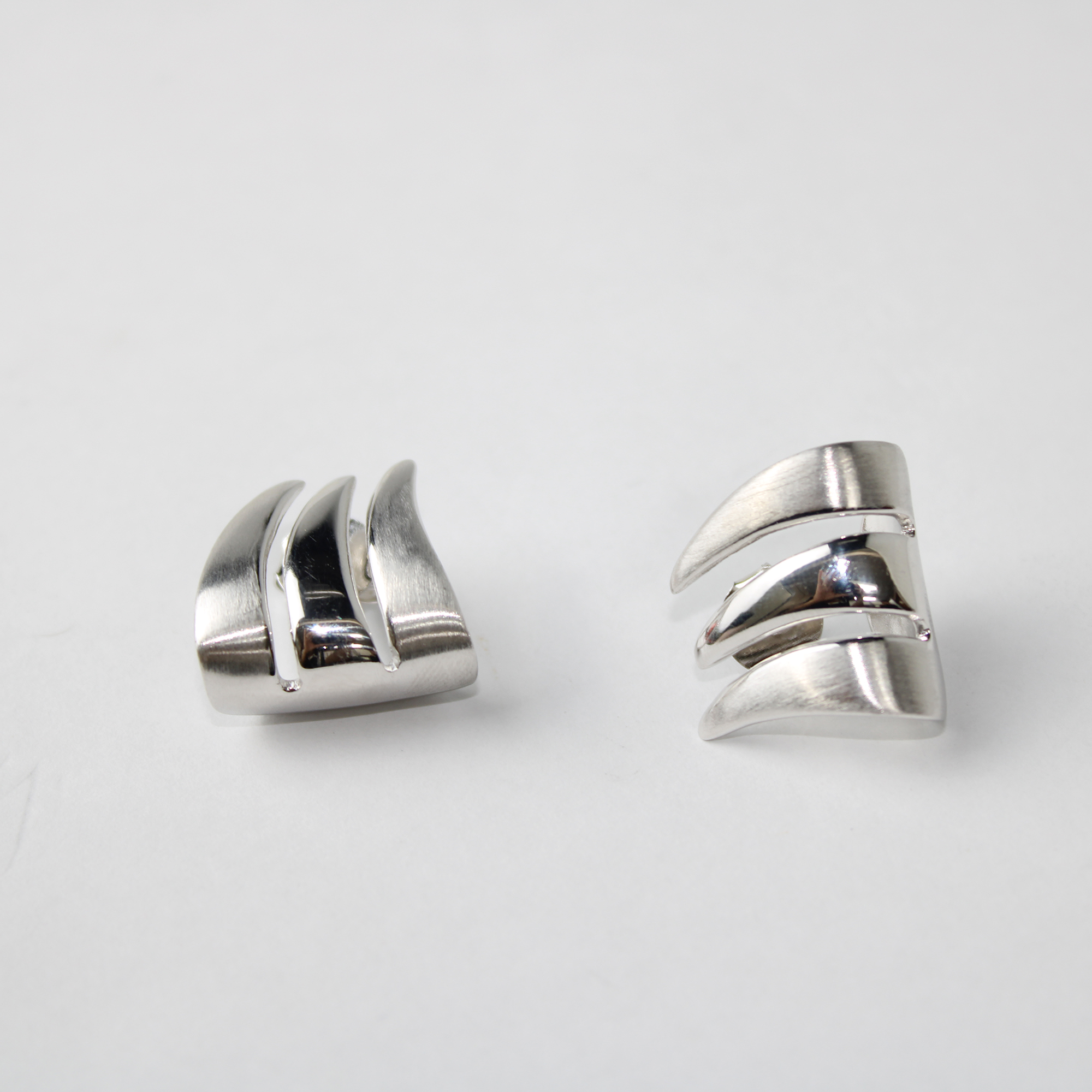 O brinco folheado moderno fosco apresenta um design contemporâneo e elegante, com curvas suaves e acabamento contrastante entre o fosco e o polido. Sua forma escultural traz sofisticação e estilo, ideal para quem busca um acessório marcante e refinado.