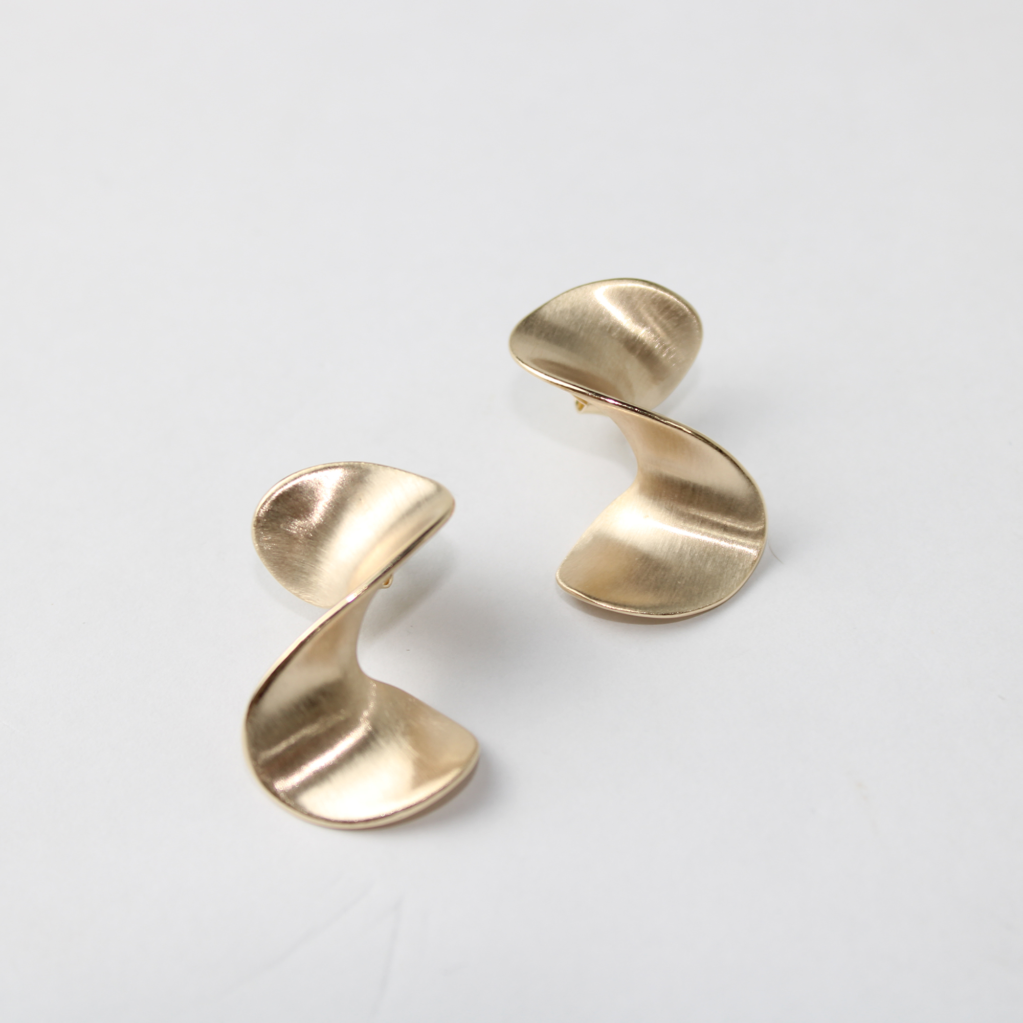 O brinco folheado torcido ouro fosco é uma peça contemporânea que une elegância e movimento em um design artístico. Seu formato sinuoso cria um efeito tridimensional sofisticado, refletindo a luz de maneira delicada e harmoniosa.