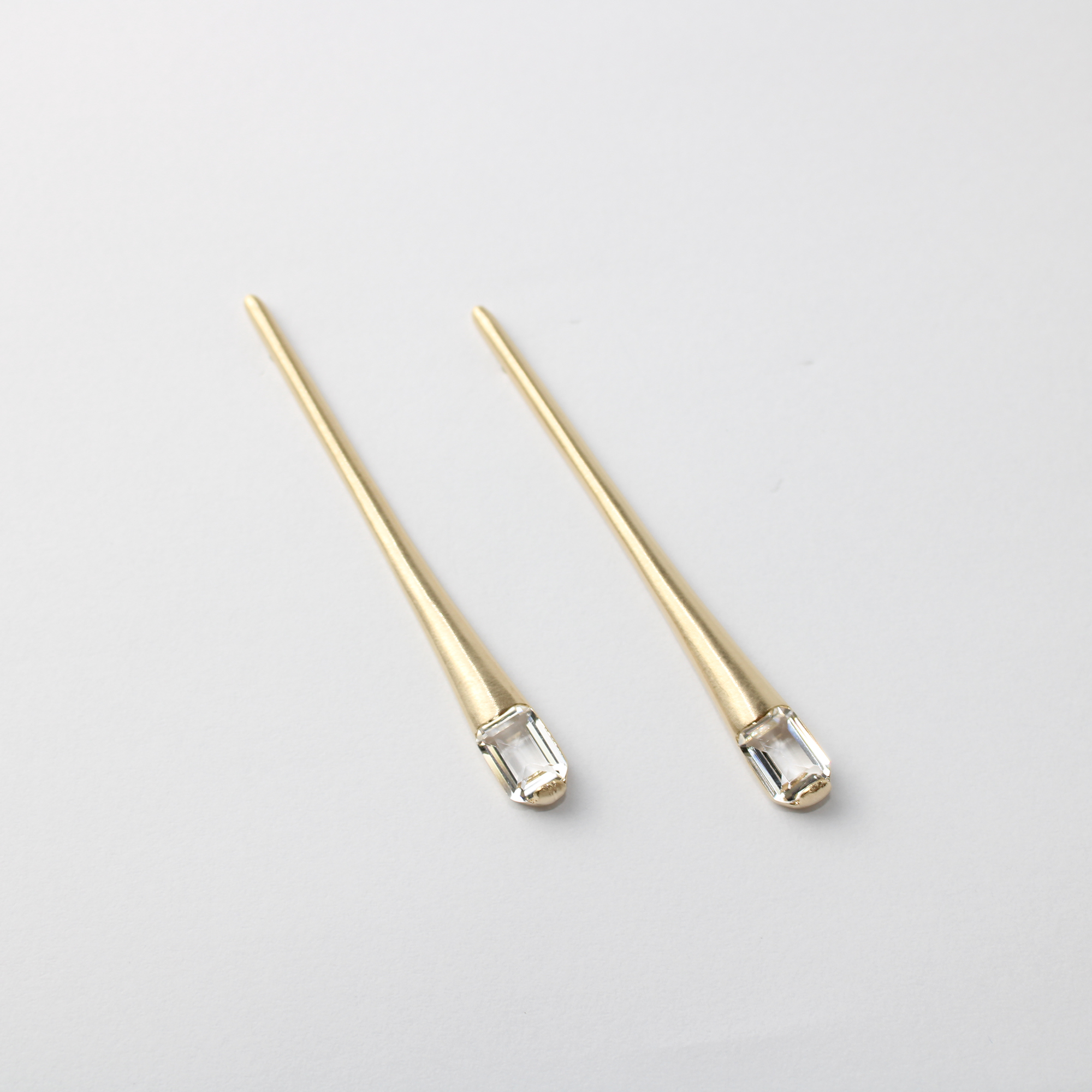 Com um design minimalista de palito, ele apresenta um acabamento em metal dourado de alta qualidade, realçado por delicados cristais que capturam a luz com um brilho discreto e luxuoso. Versátil e atemporal, pode ser usado para complementar tanto looks casuais chiques quanto produções mais formais.