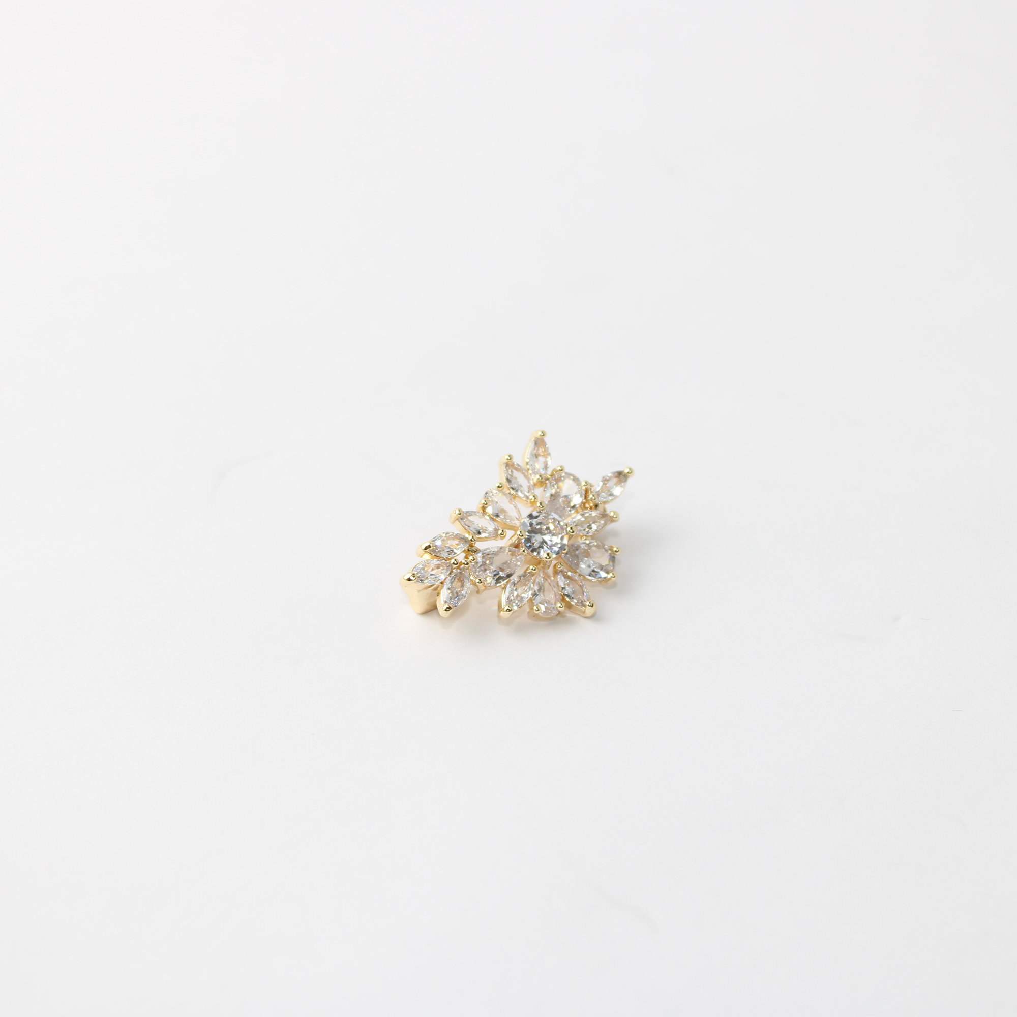 O Broche de Flor Cravejado é a peça ideal para quem deseja adicionar um toque de elegância atemporal e brilho sofisticado ao vestuário. Com um design floral delicado e imponente, este acessório é composto por zircônias de alta qualidade em lapidação marquise, que simulam pétalas radiantes ao redor de um centro luminoso.
