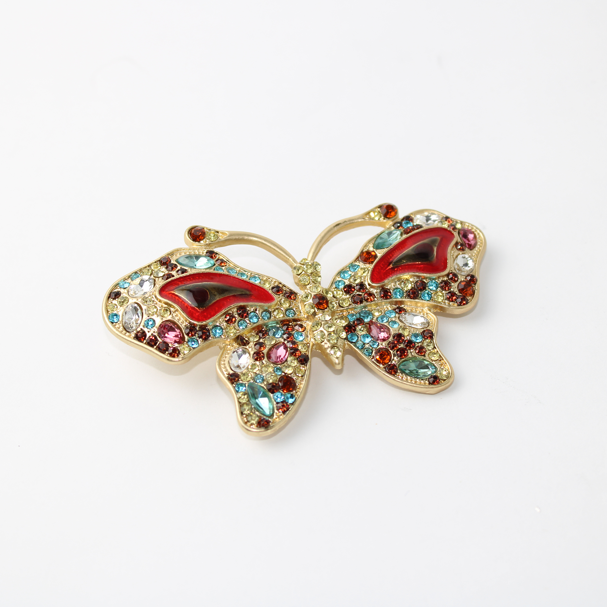 O Broche de Metal Borboleta é uma peça de alta joalheria que captura a delicadeza e a beleza vibrante da natureza em um design luxuoso. Este acessório refinado apresenta uma borboleta com asas ricamente detalhadas, meticulosamente cravejadas com um degradê de cristais multifacetados e detalhes em resina que conferem um brilho multidimensional deslumbrante.