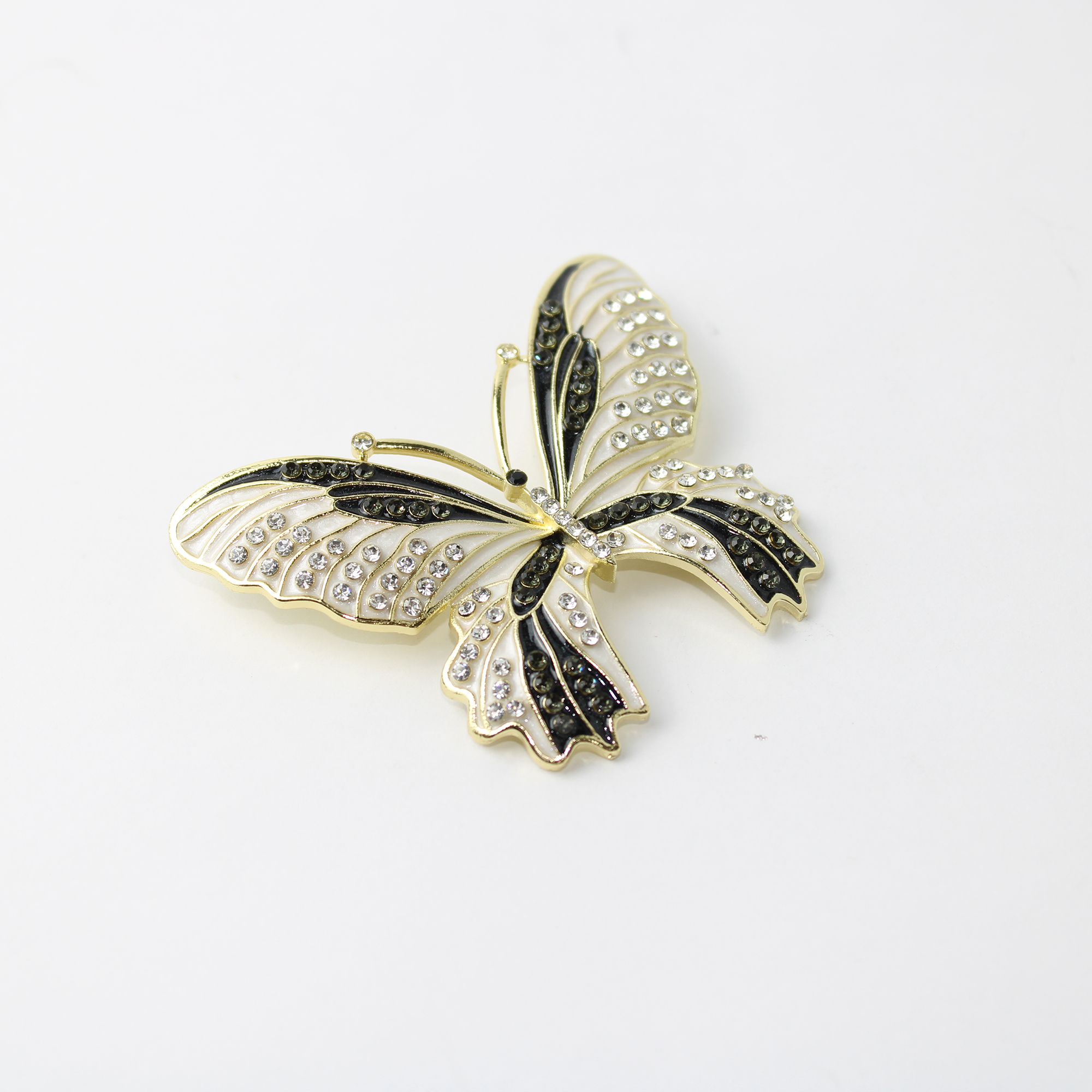 O Broche de Metal Borboleta é uma peça de alta joalheria que une a delicadeza da natureza a um design clássico e sofisticado. Este acessório refinado apresenta asas detalhadas com um acabamento esmaltado impecável, criando um contraste elegante e atemporal.