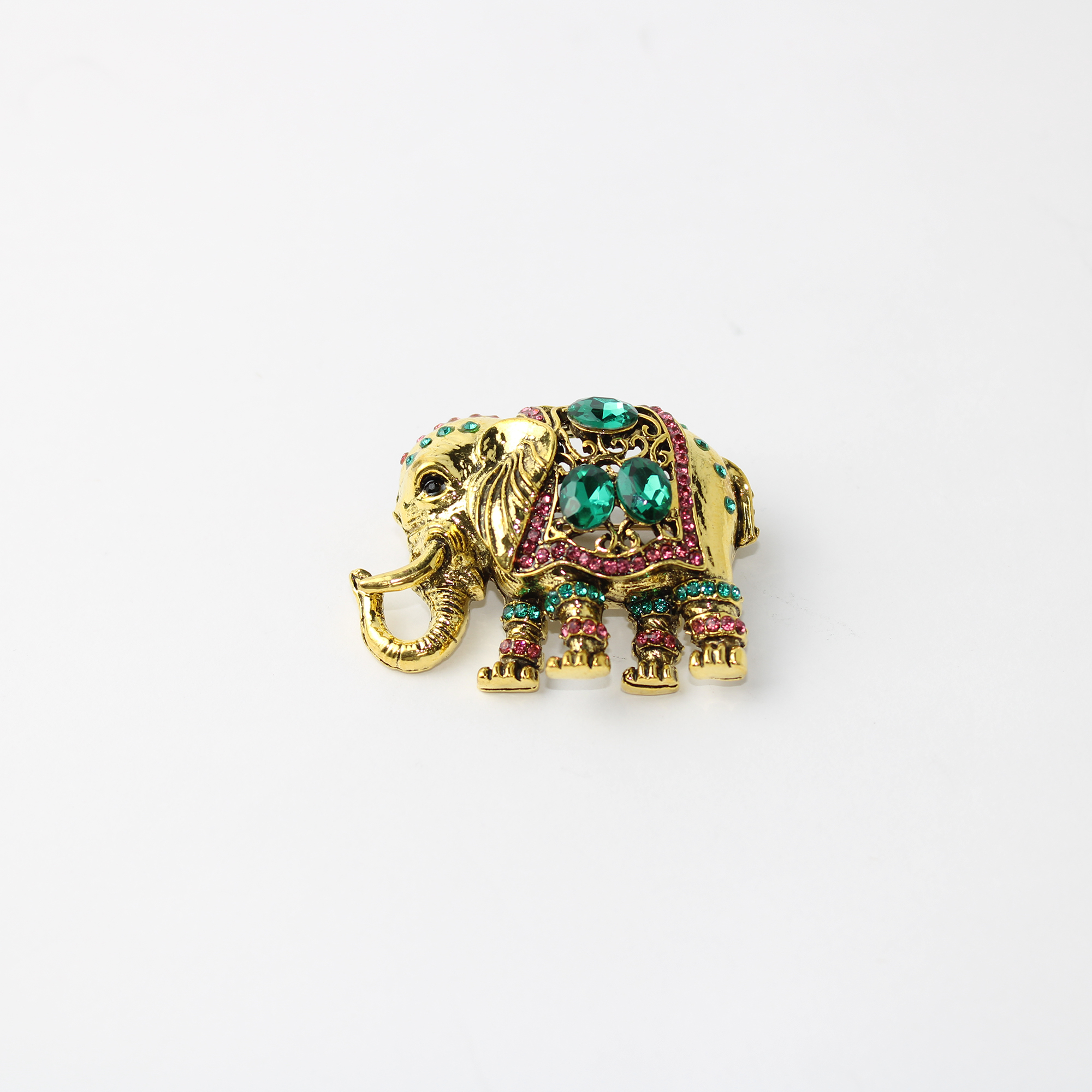 O Broche de Metal Elefante é uma peça de alta joalheria que simboliza prosperidade e força com um design luxuoso e rico em detalhes. Este acessório refinado apresenta a silhueta imponente de um elefante indiano, meticulosamente trabalhada com ornamentos vazados e acabamento premium.