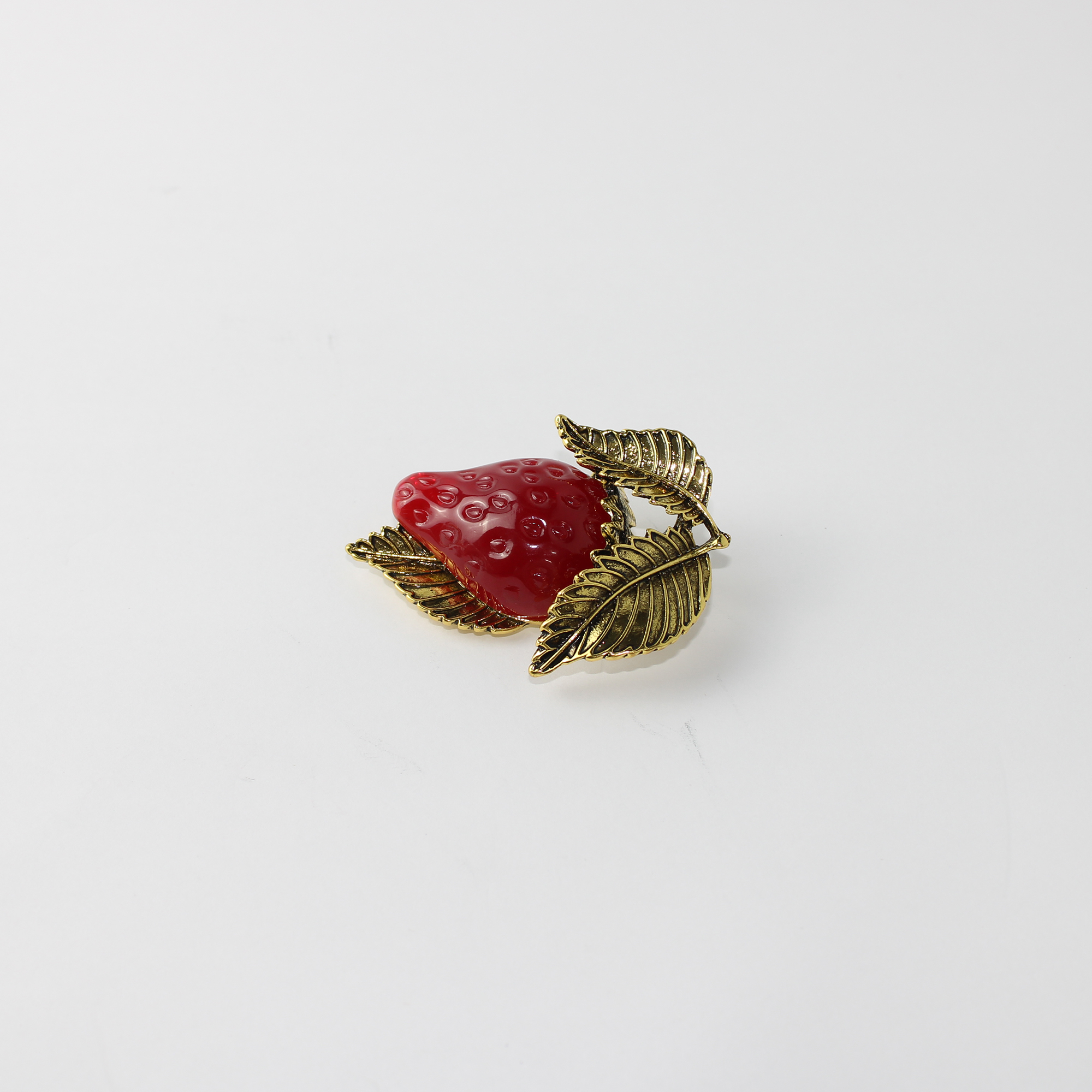 Adicione um toque de doçura e elegância vintage ao seu visual com o Broche de Metal Morango. Esta peça encantadora destaca-se pelo seu design detalhado, apresentando um morango com acabamento esmaltado em vermelho vibrante e textura que reproduz fielmente a fruta.