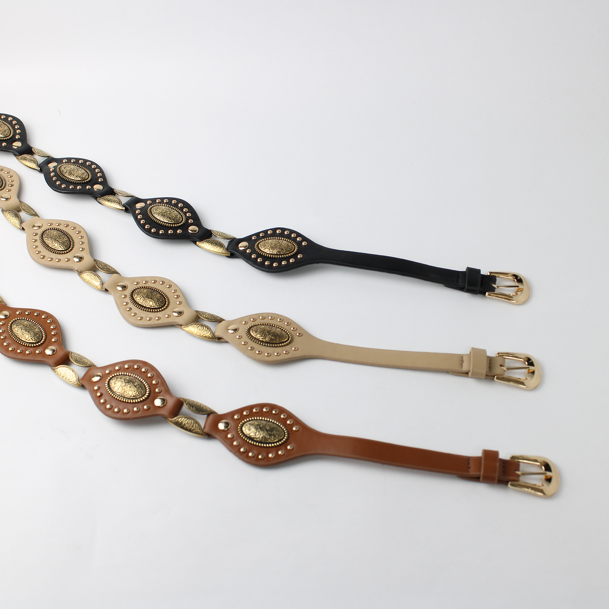 Disponível nas cores Bege/Dourado, Caramelo/Dourado e Preto/Dourado, o cinto é confeccionado com material de alta qualidade e acabamento refinado, garantindo durabilidade e conforto ao usar.