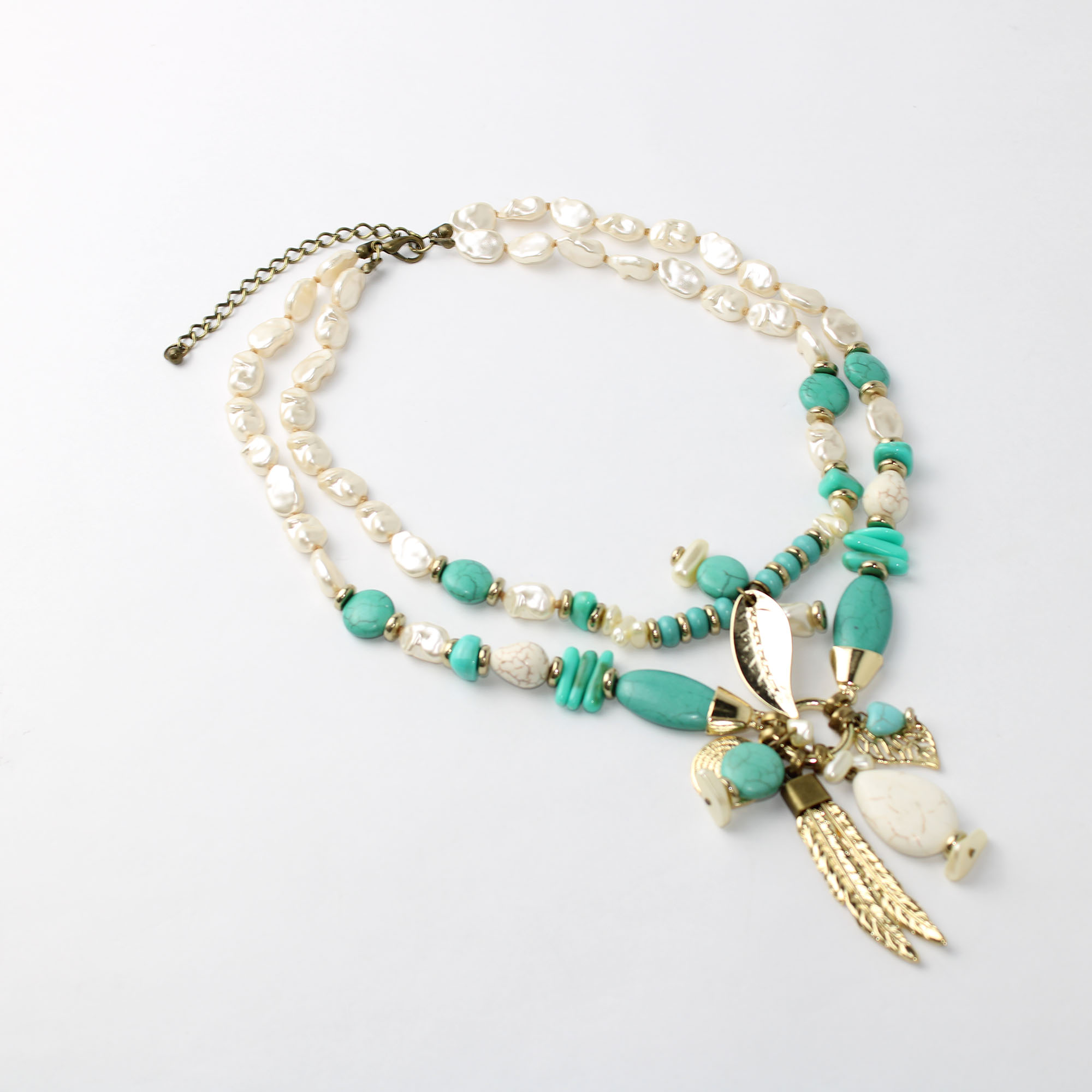 Elegante e cheio de estilo, o colar de 2 voltas com pérolas e turquesa traz uma combinação perfeita entre sofisticação e modernidade. Suas voltas duplas misturam pérolas com pedras turquesa, criando um visual marcante e delicado ao mesmo tempo.