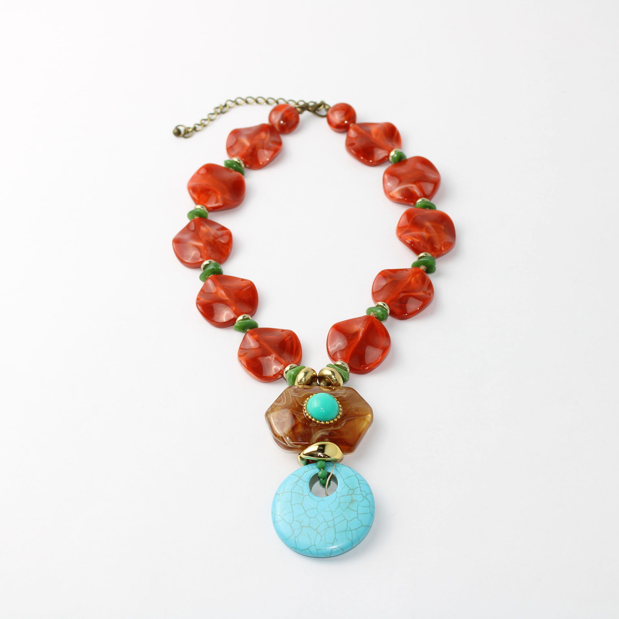 O colar curto turquesa com pedras e pingente traz personalidade e modernidade em uma peça única e marcante. Com pedras orgânicas em tons de verde e turquesa, ele destaca o visual com cores intensas e textura sofisticada.