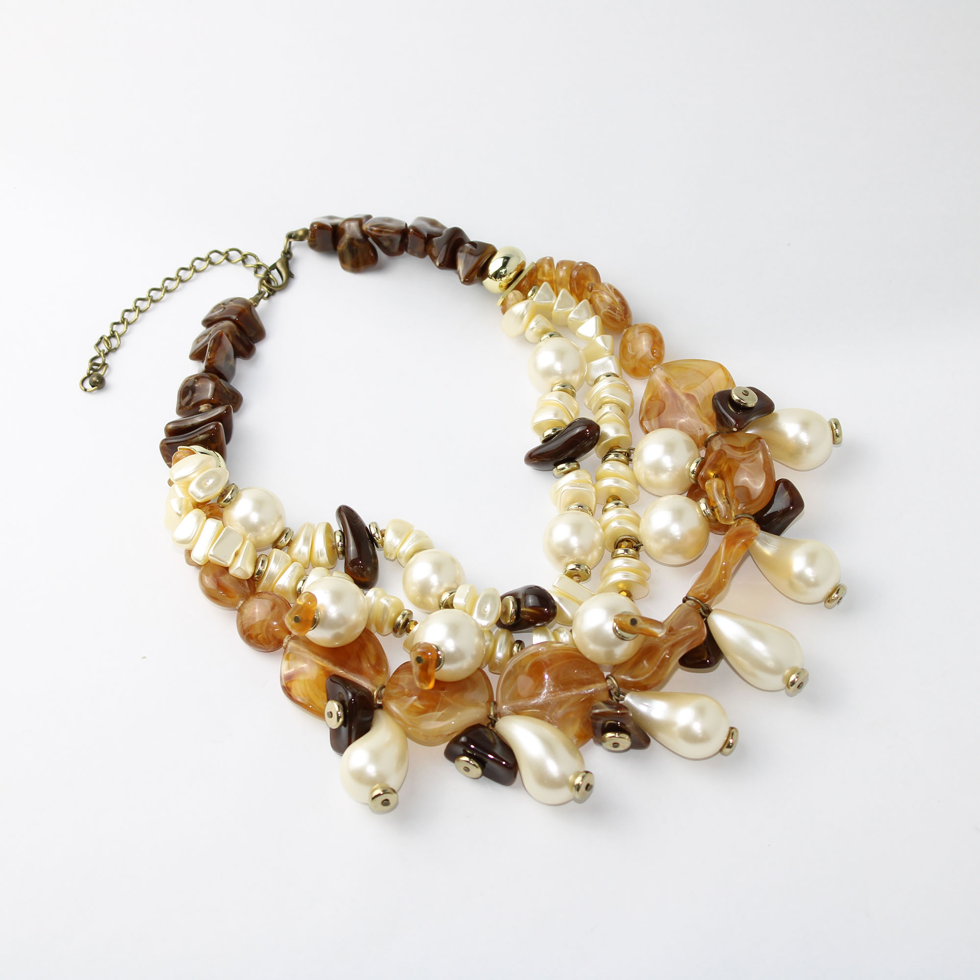 O Colar Metal 3 Voltas Pérola e Âmbar é uma peça marcante e sofisticada, composta por três camadas de contas em diferentes formatos, unindo tons de pérola, âmbar e detalhes em marrom para criar um visual único e cheio de personalidade.