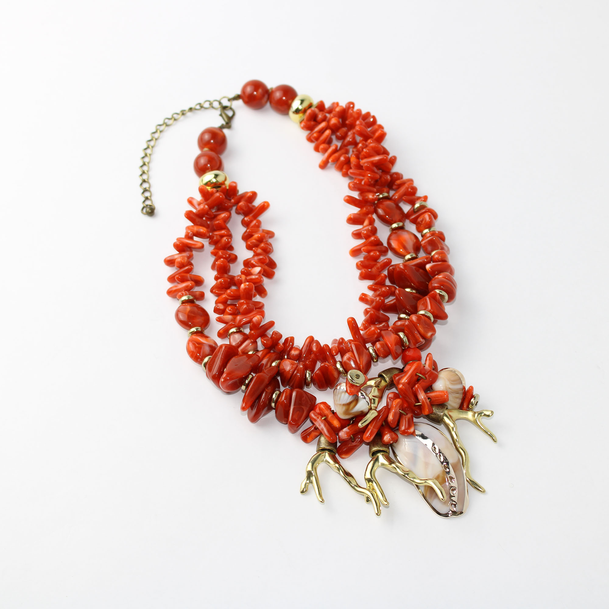 Seu design multifiado cria volume e movimento, destacando o colo de maneira marcante. As combinações coloridas tornam o acessório perfeito para looks modernos, descontraídos ou para dar um toque de cor a produções mais neutras.