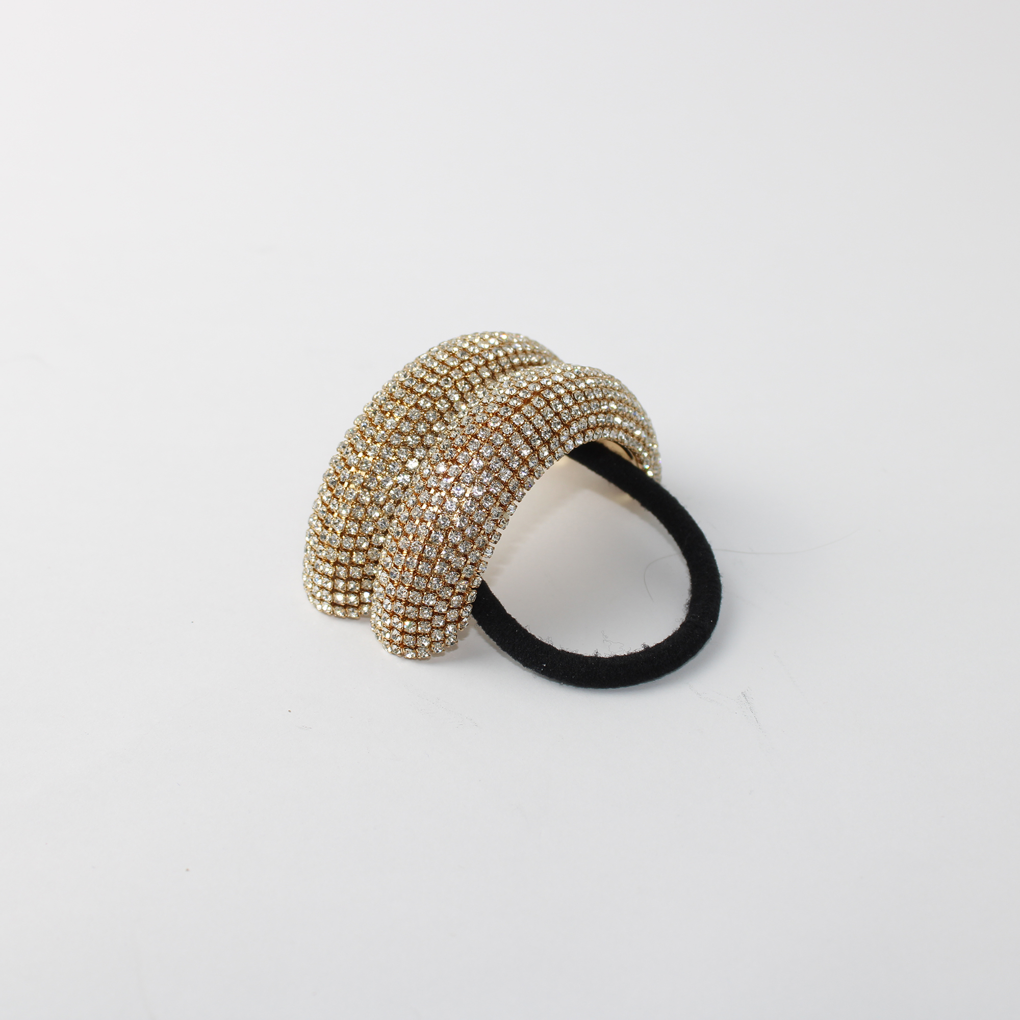 O Elástico Metal Duo é o acessório definitivo para quem deseja transformar um penteado simples em uma produção de puro luxo. Este prendedor exclusivo apresenta um design de duas faixas metálicas paralelas, ricamente cravejadas com fileiras de cristais de brilho intenso, que conferem um acabamento de joia ao seu rabo de cavalo ou coque.
