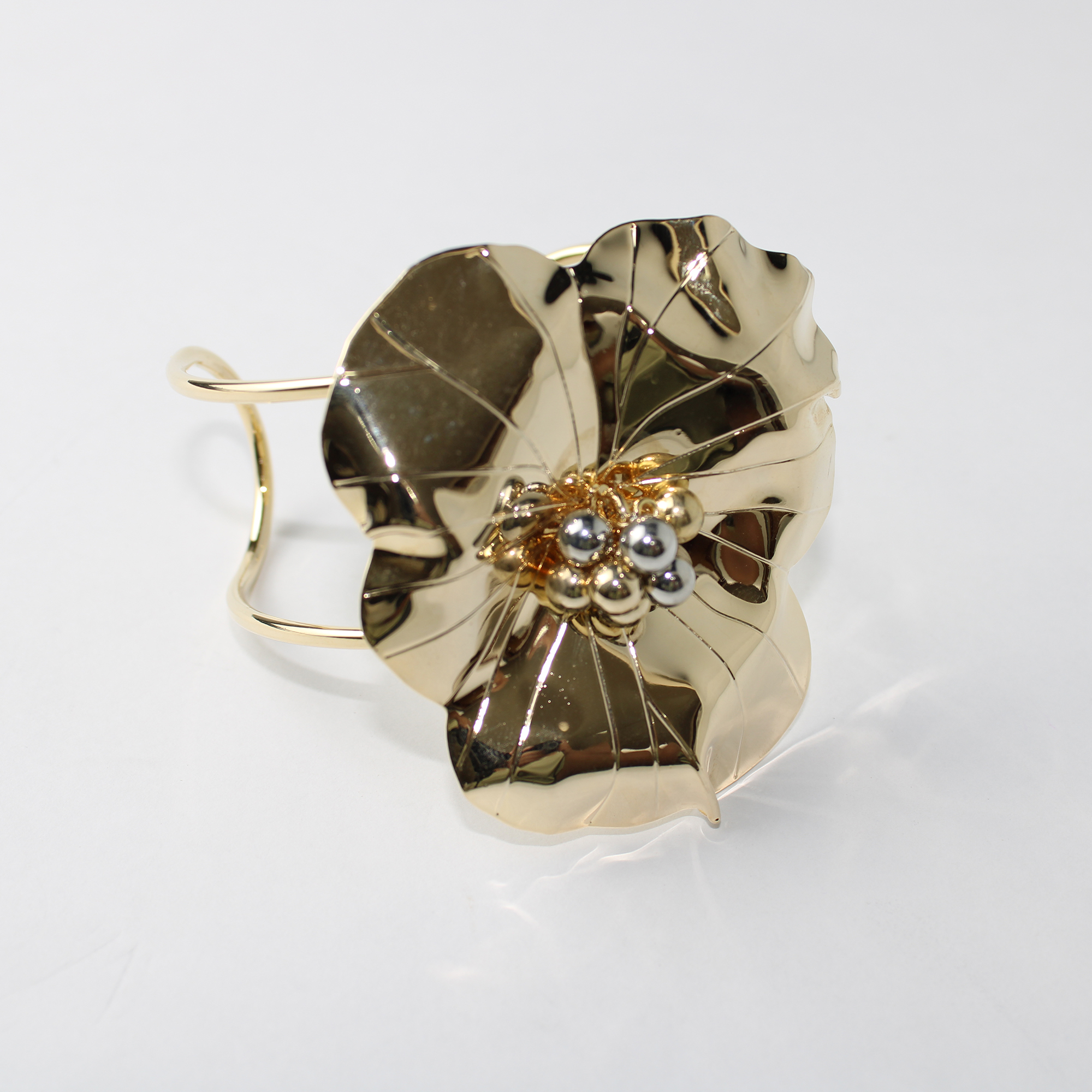 A Pulseira Metal Bracelete é uma peça marcante e cheia de estilo, com design em formato de flor metálica que traz um toque moderno e sofisticado ao visual. Produzida nas cores dourado e prateado, ela combina brilho e personalidade, tornando-se o acessório perfeito para complementar looks elegantes.