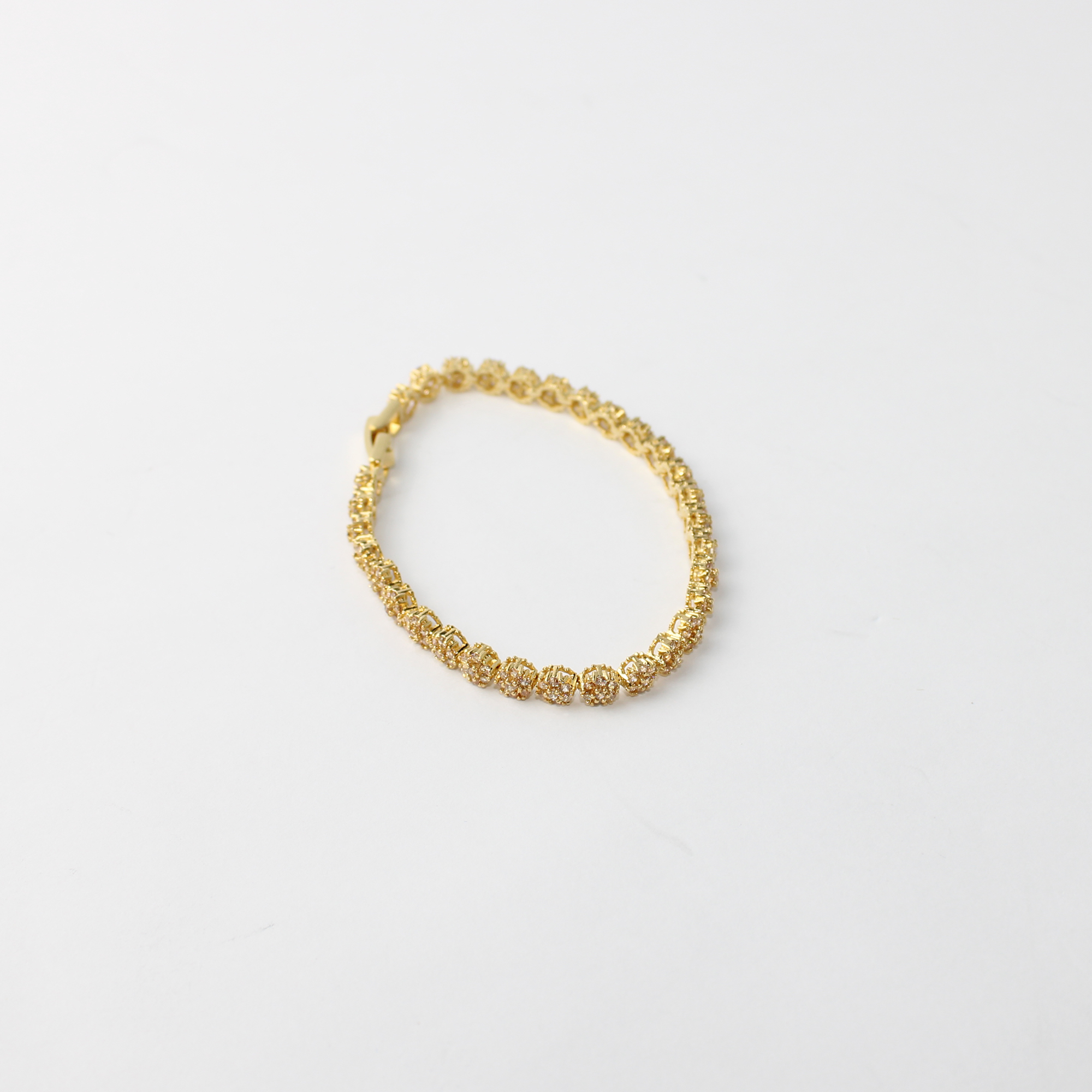 A Pulseira Riviera Metal Flor é a escolha perfeita para quem busca unir a delicadeza do design floral com o brilho clássico do estilo riviera. Cada elo desta peça foi cuidadosamente trabalhado no formato de uma pequena flor, cravejada com cristais que capturam a luz de maneira sutil e elegante.