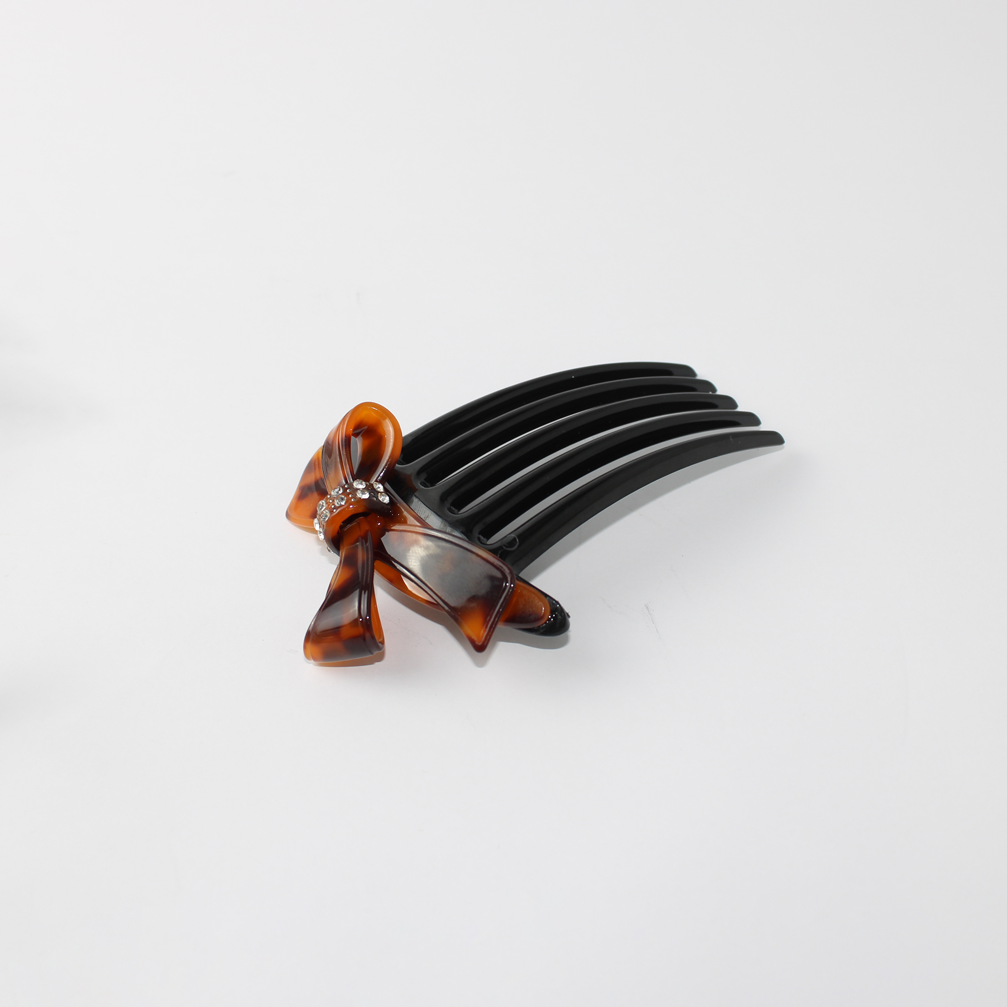 Eleve a sofisticação do seu penteado com a Travessa de Cabelo em Resina, um acessório que une o charme clássico do design de laço com a modernidade da resina polida. Este modelo exclusivo apresenta um delicado nó central cravejado com strass de alto brilho, garantindo um ponto de luz discreto e elegante ao seu visual.